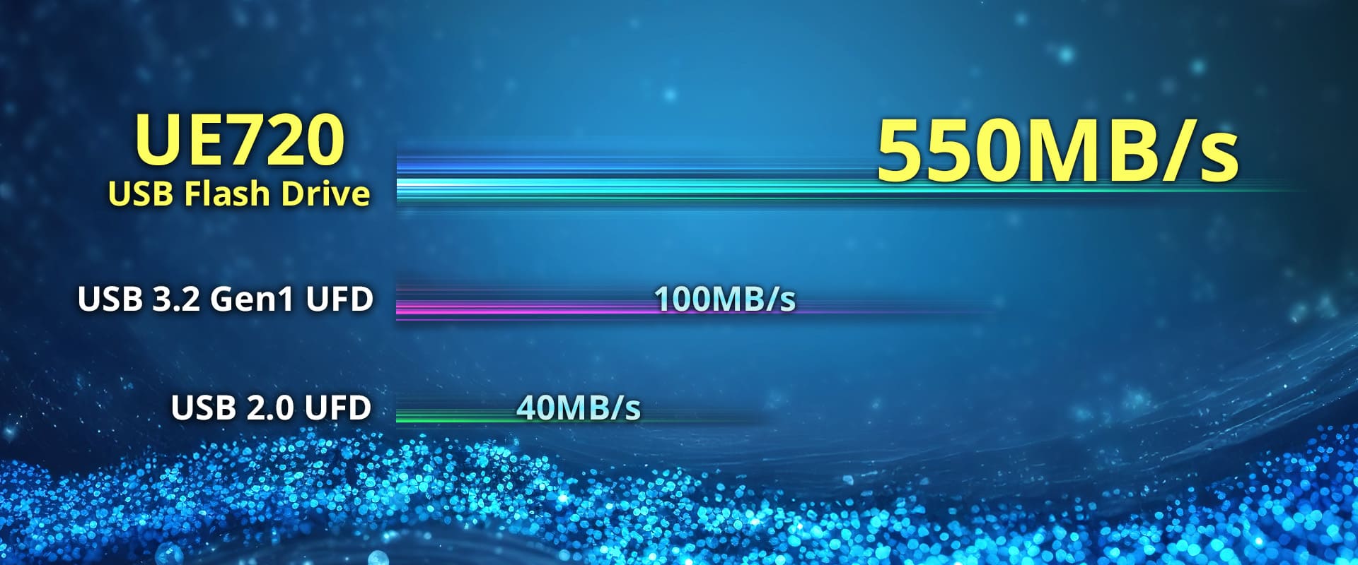 With powerful performance by design, the UE720 features a USB 3.2 Gen2 interface with 10Gbps bandwidth. Instantly plug and transfer large files or countless smaller ones—all with ease. Fully backward compatible with USB 2.0 devices.